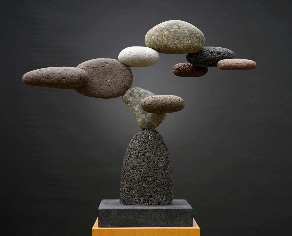 “THE CANTAMAR SCULPTURES ARE MADE OF STONES GATHERED BY DAVY OUT OF THE PACIFIC OCEAN IN MEXICO, NEAR THE SMALL TOWN FOR WHICH THE SERIES IS NAMED, WHICH TRANSLATES AS “SONG OF THE SEA.” ROUNDED BY THE TIDES, THEY APPEAR TO ROLL LIKE THE WAVES THAT SHAPED THEM, UNFOLDING ORGANICALLY AT EACH MOMENT. THESE WORKS DEFY GRAVITY, JOSTLING OUR EXPECTATIONS AND SUBVERTING OUR PERCEPTION OF THEIR WEIGHT AND NATURAL PRESENCE IN THE WORLD. THE UNDENIABLY SERENE, CONTEMPLATIVE CHORD STRUCK BY THESE WORKS MAKES IT DIFFICULT TO REFRAIN FROM DISCUSSING THEM IN SPIRITUAL TERMS. YET WHILE DECIDEDLY NON-ACADEMIC WORDS LIKE WONDERMENT AND MAGIC SERVE TO ADDRESS THE INTUITIVE, VISCERAL RESPONSES THE WORK EVOKES IN VIEWERS, THEY ALSO UNDERVALUE THE ARTIST’S EMPATHY WITH THE STONES AS HE CONVINCES THESE NATURAL OBJECTS TO BEHAVE UNNATURALLY.”