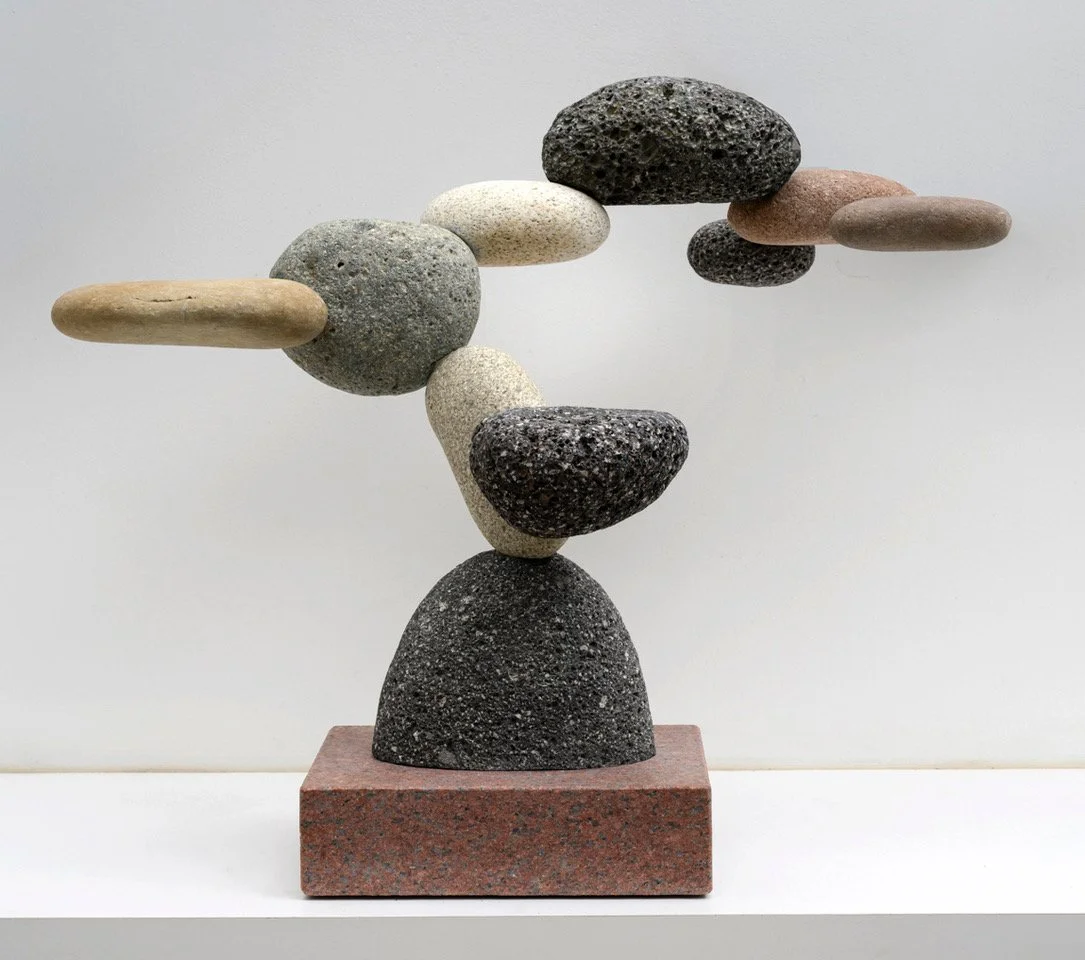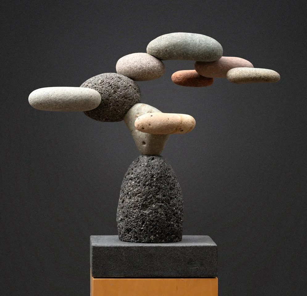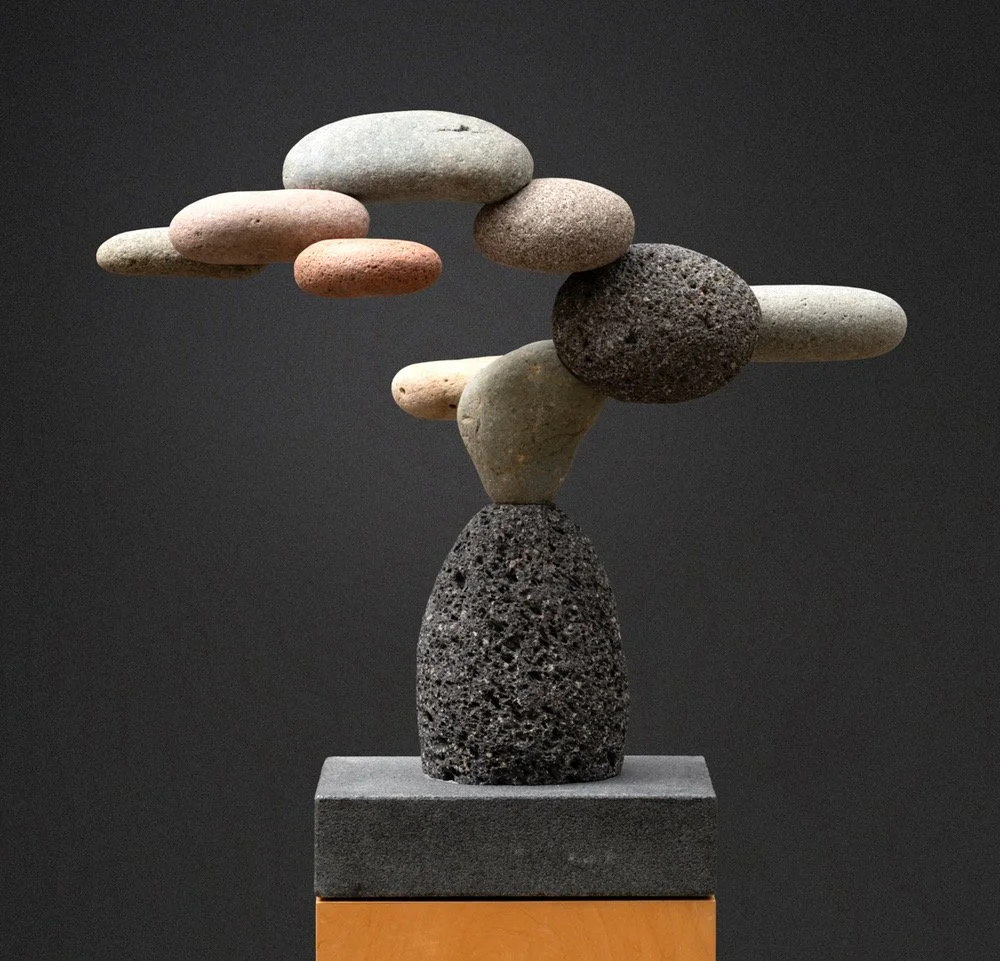 “I love the transformation of the isolated stones I pull from the sea into contemplative, cantilevered arcs, floating like clouds above the sea. But they are more than what they look like. They are what they do. These gravity defying sculptures express a feeling of serenity, which transcends form.” -WD